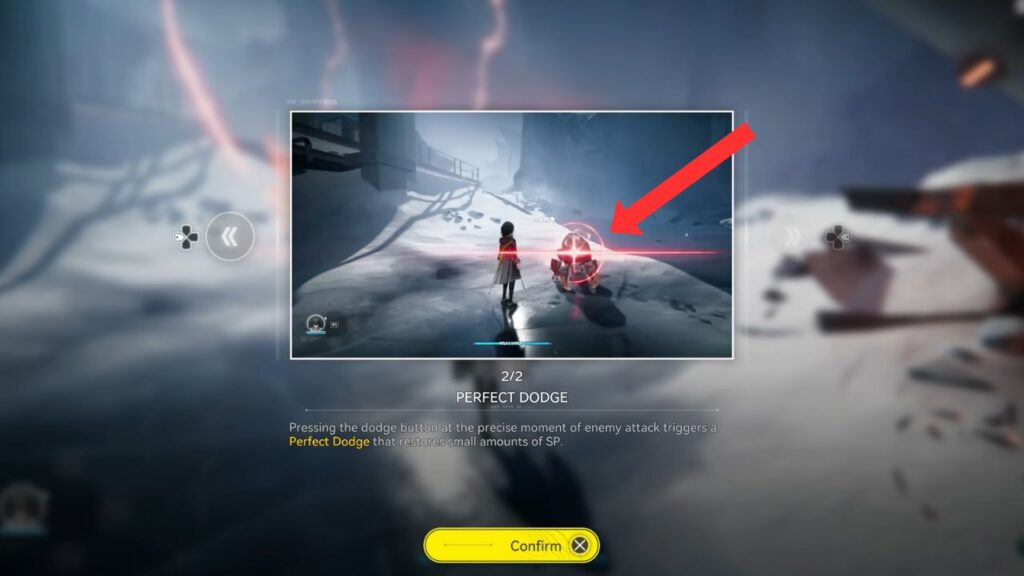 When an enemy is about to strike, you’ll see a red flash, this is your cue to dodge. Dodging at the perfect moment triggers a Perfect Dodge, letting you completely avoid the attack while restoring a small amount of SP.