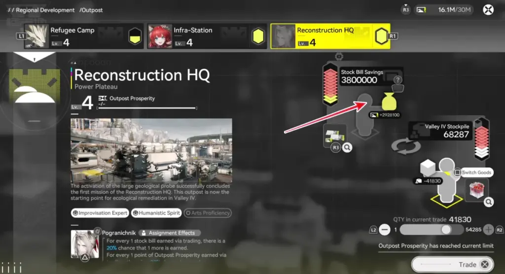 - First, upgrade your outposts whenever you can. Higher level outposts give you more Stock Bills per trade.
