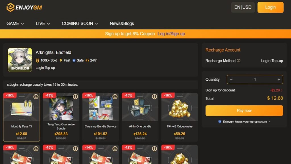 The biggest money-saver in 2026? Enjoygm and this is one of the best platforms trusted by many players for Arknights Endfield top-ups.